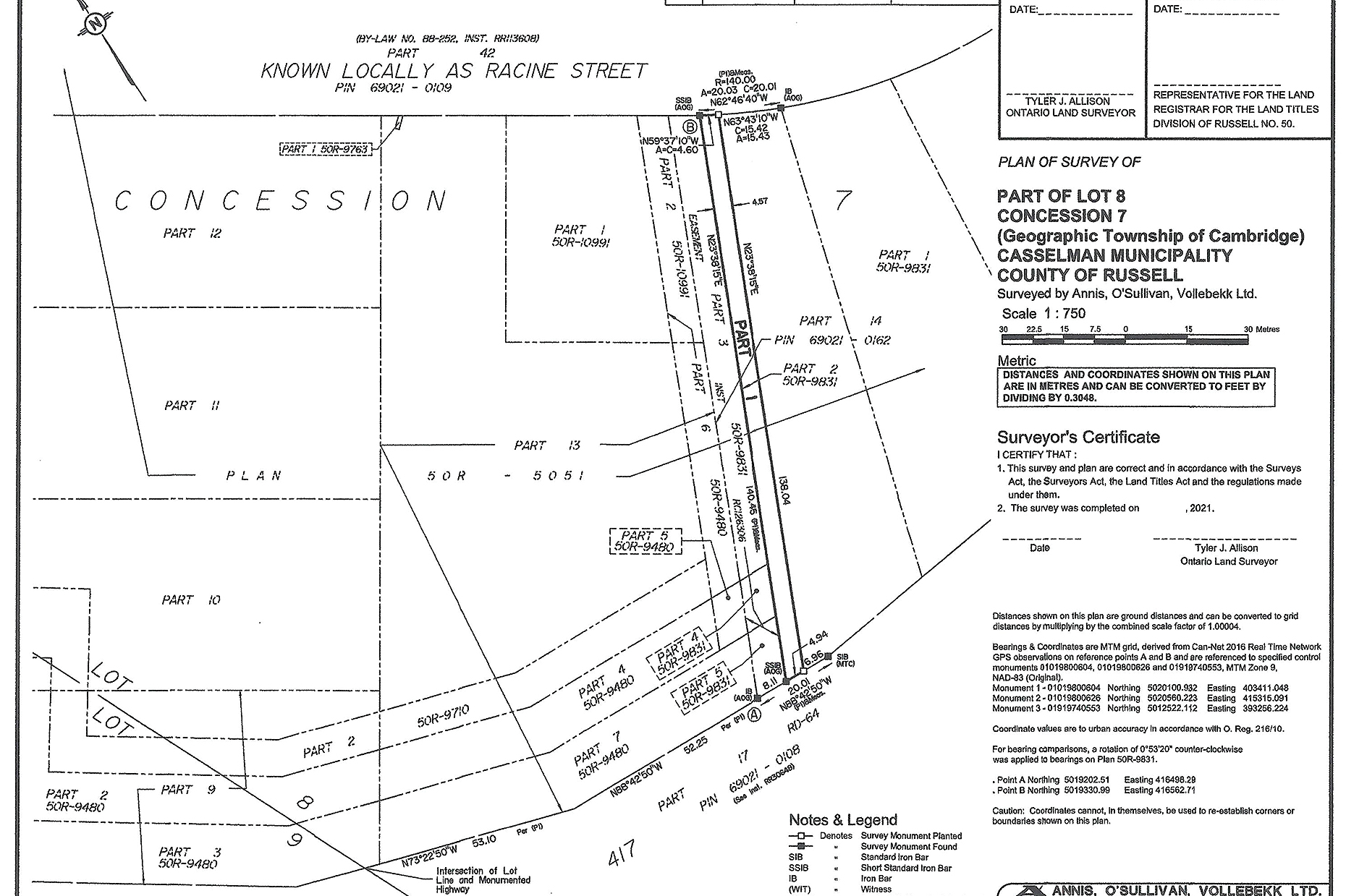 Dist/Neigh:Casselman Zoning: Mixed Use Industrial Lot Area: 95,927 sf (2.202 ac) Legal Description: PART OF LOT 8 CONCESSION 7 CAMBRIDGE, PARTS 1, 2, 3, 4, & 5 PLAN 56R9831 SUBJECT TO AN EASEMENT IN GROSS OVER PARTS 3, 4, & 5 PLAN 50R9831 AS IN RC126306 VILLAGE OF CASSELMAN PIN: 690210162